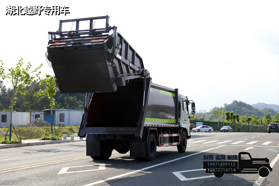 此车采用天锦车身,驾驶室后排带有小卧铺。4×2底盘190马力改装14方压缩式垃圾车。